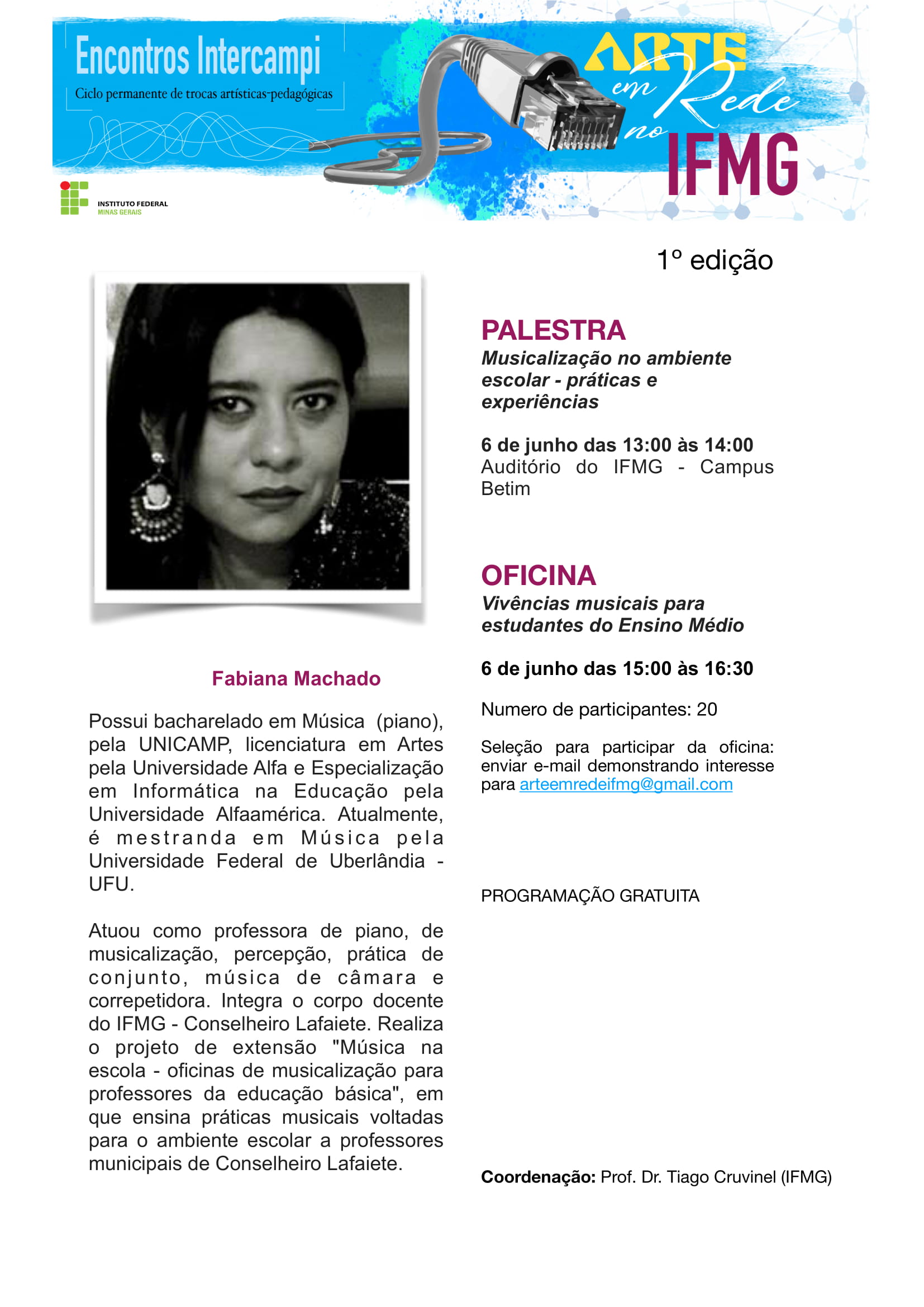 O evento é gratuito e aberto à comunidade externa. As inscrições poderão ser realizadas pelo e-mail "arteemredeifmg@gmail.com".