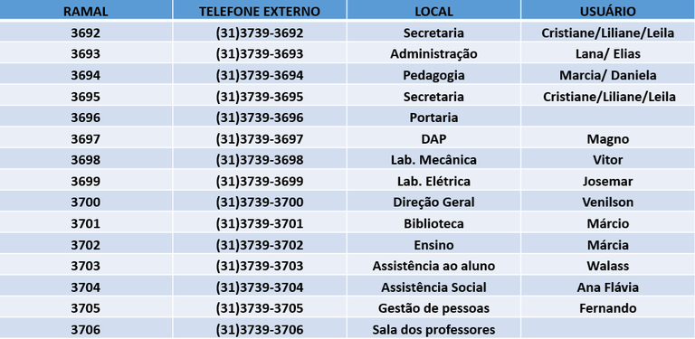 Contatos Setores e Servidores