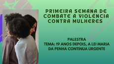 "19 anos depois, a Lei Maria da Penha continua urgente" será o tema de uma palestra realizada no auditório do IFMG - Campus Governador Valadares, na próxima quinta-feira, dia 21 de agosto, às 19h30. O evento integra a programação da 1ª Semana de Combate à Violência Contra Mulheres, promovida nos meses de agosto e setembro pelo IFMG-GV.