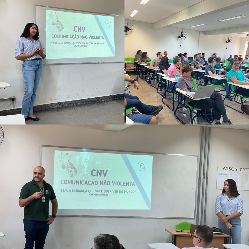 O Instituto Federal de Minas Gerais (IFMG) – Campus Ibirité recebeu, pelo segundo dia consecutivo, seu corpo docente para uma programação enriquecedora de troca de conhecimentos e alinhamento institucional. O evento contou com uma palestra da psicóloga Cristiane Amorim sobre Comunicação Não Violenta, além de importantes orientações sobre infraestrutura apresentadas pelo servidor Edmilson Novaes, Diretor do setor de Administração e Planejamento.
