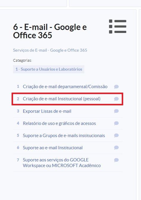 * No caso a solicitação for para criação para servidores docentes - solicitar na descrição após a criação do e-mail