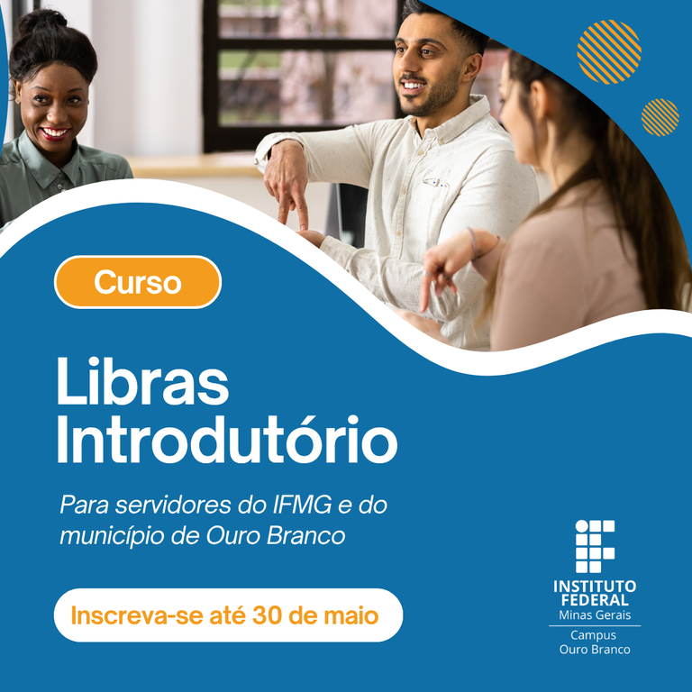 Curso de Libras será ofertado para servidores do Campus Ouro Branco e do município de Ouro Branco. Inscrições devem ser realizadas até sexta-feira, dia 30 de maio.
