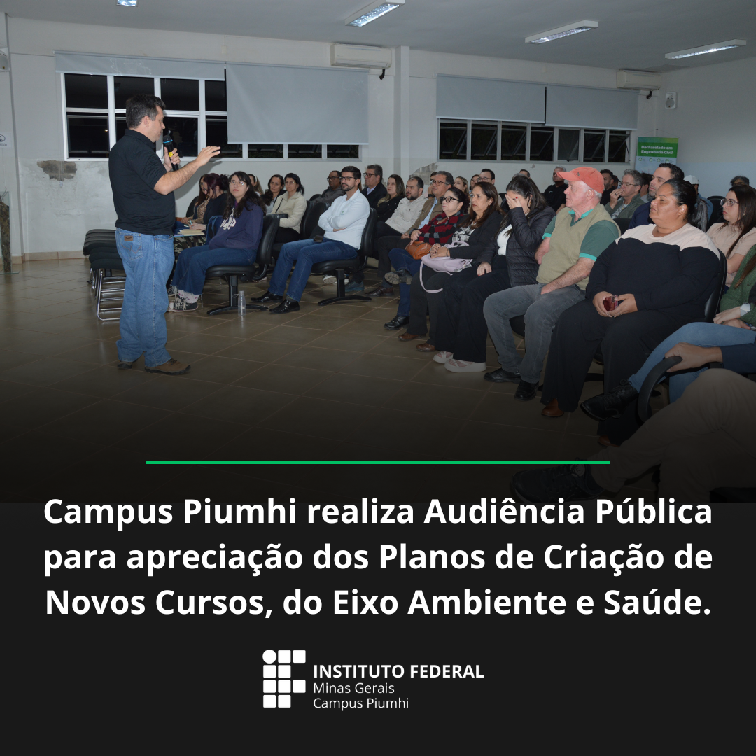 Campus Piumhi realiza Audiência Pública para apreciação dos Planos de Criação de Novos Cursos, do Eixo Ambiente e Saúde.