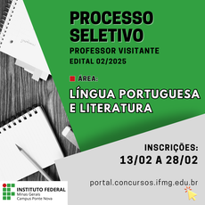 Está divulgado o EDITAL 02/2025 destinado a seleção de candidatos para contratação de PROFESSOR VISITANTE para o IFMG Ponte Nova.
