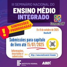 A terceira edição do Seminário Nacional do Ensino Médio Integrado já tem data e local para ocorrer. O evento está marcado para 8 e 9 de outubro de 2025, na Arena BRB Mané Garrincha, em Brasília (DF). Professores e técnicos administrativos do IFMG estão convidados a participar. A inscrição é gratuita e deve ser realizada no site https://www.even3.com.br/iiisnemi.