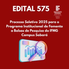 EDITAL 575/2025 - Processo Seletivo 2025 para o Programa Institucional de Fomento a Bolsas de Pesquisa do IFMG Campus Sabará