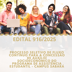 EDITAL 916/2025 - Processo Seletivo de Fluxo Contínuo para a concessão de auxílio socioeconômico do Programa de Assistência Estudantil - Campus Sabará