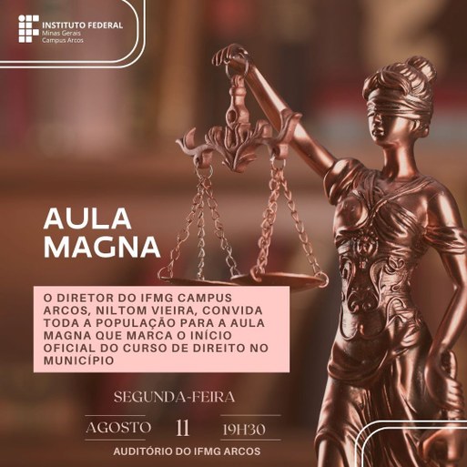 A noite desta segunda-feira, 11 de agosto, será marcada por um momento inédito na história de Arcos. Às 19h30, o Instituto Federal de Minas Gerais (IFMG) campus Arcos dará início à aula do primeiro curso gratuito de Direito já oferecido no município.