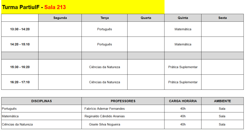 O Partiu IF é uma iniciativa do Governo Federal, em parceria com os Institutos Federais, que visa preparar estudantes do 9º ano do Ensino Fundamental para o ingresso no Ensino Médio Integrado, por meio do reforço nas disciplinas de Português, Matemática e Ciências da Natureza. O curso tem carga horária total de 320 horas, incluindo aulas, atendimento aos estudantes e práticas suplementares. As atividades serão realizadas entre abril e novembro de 2025, em dias e horários definidos pelos campi participantes.