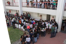 A data foi comemorada com refrigerante e bolo e a reunião de estudantes, técnicos e docentes, que cantaram parabéns para o campus.
