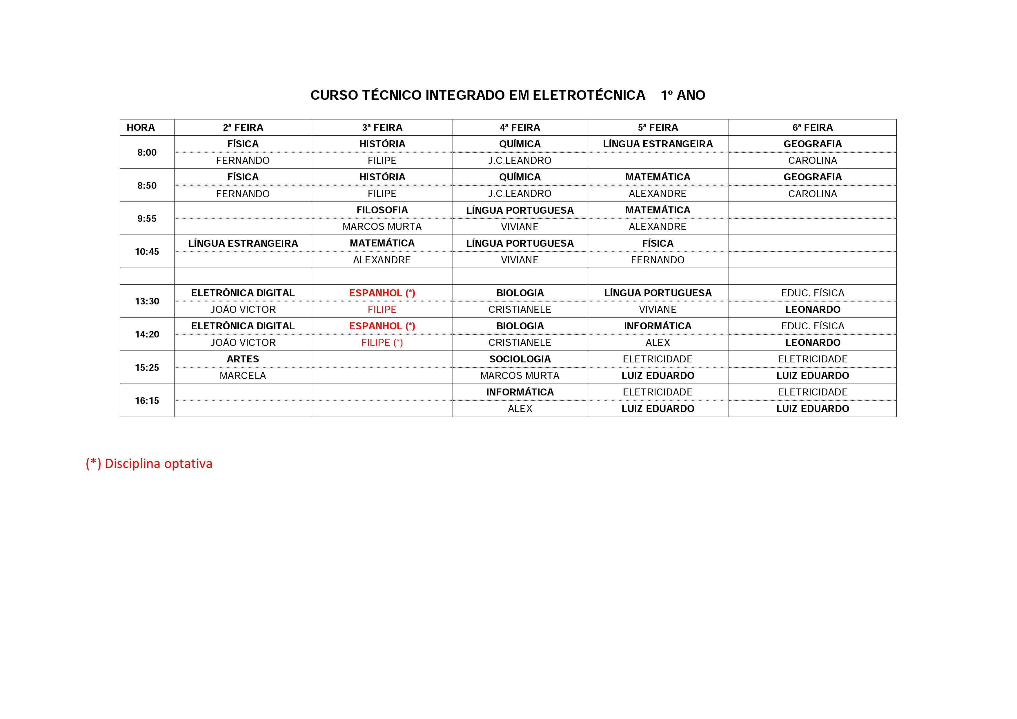 Horários de aulas