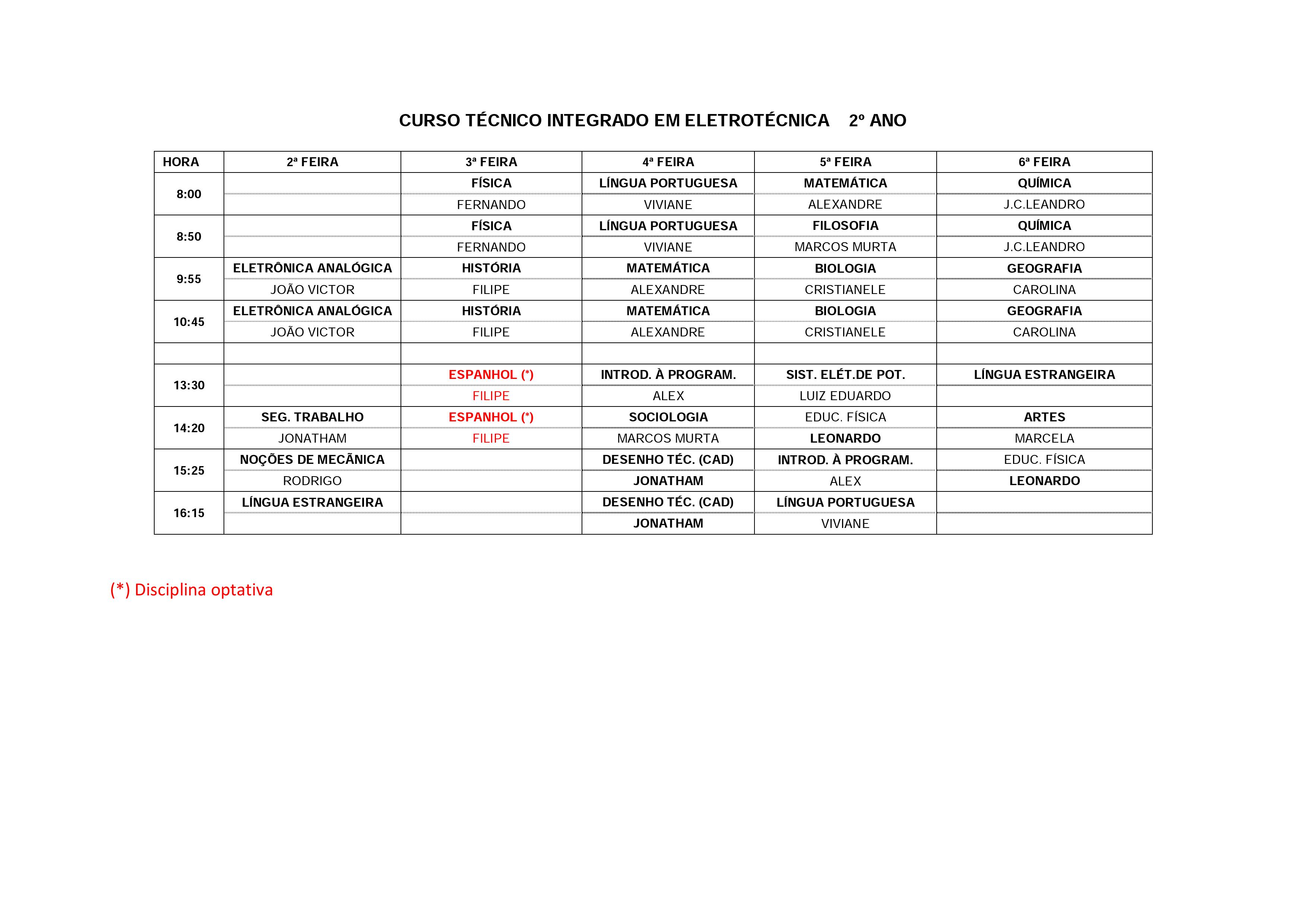Horários de aulas