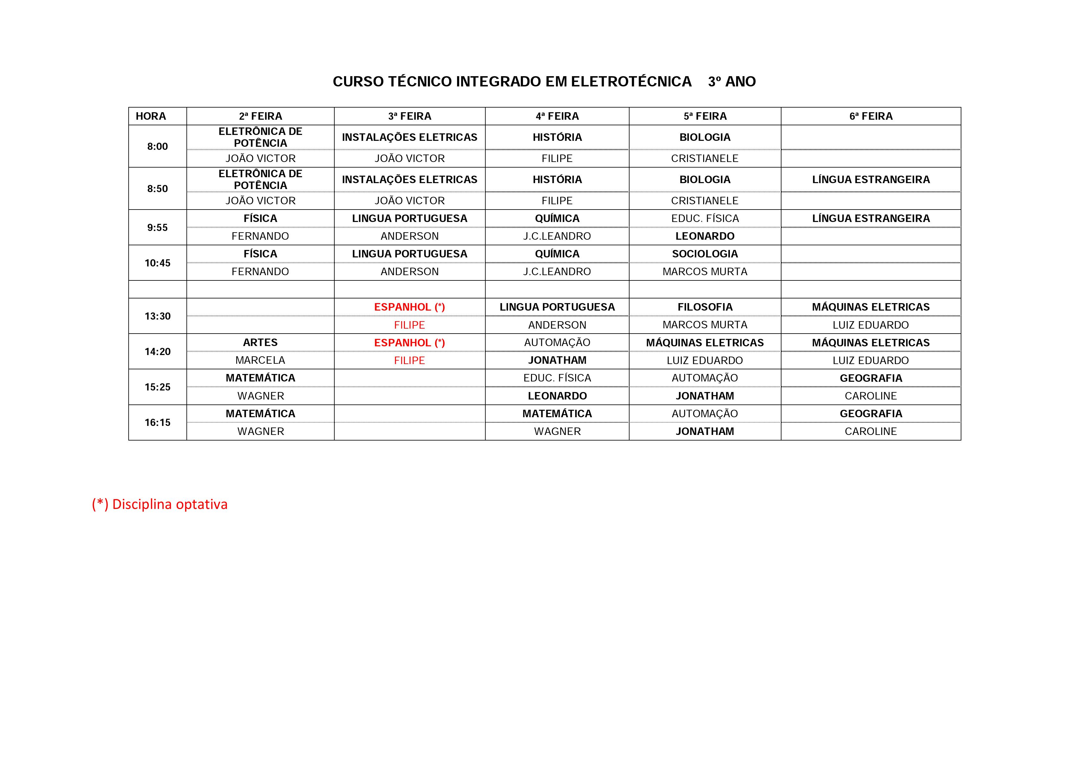 Horários de aulas
