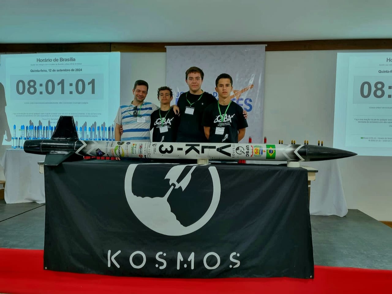 Alunos do IFMG Campus Conselheiro Lafaiete participaram da 54ª Jornada de Foguetes que aconteceu entre os dias 9 e 12 de setembro de 2024, no Hotel Fazenda Ribeirão, em Barra do Piraí, Rio de Janeiro. A Jornada de Foguetes é um evento anual realizado pela Sociedade Astronômica Brasileira (SAB), responsável pela organização da Olimpíada Brasileira de Astronomia e Astronáutica (OBA) e a Mostra Brasileira de Foguetes (MOBFOG).