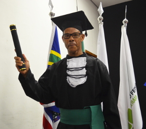 Após mais de dez anos longe dos bancos escolares, o policial militar Fernando Rodrigues dos Santos, de 52 anos, teve a oportunidade de realizar um sonho antigo: fazer um curso superior. “Na época, estudei sozinho para o Enem e consegui uma nota muito boa que dava para ingressar tanto no curso de Engenharia de Produção como no de Tecnólogo em Gestão Ambiental aqui do IFMG-GV”, explica.