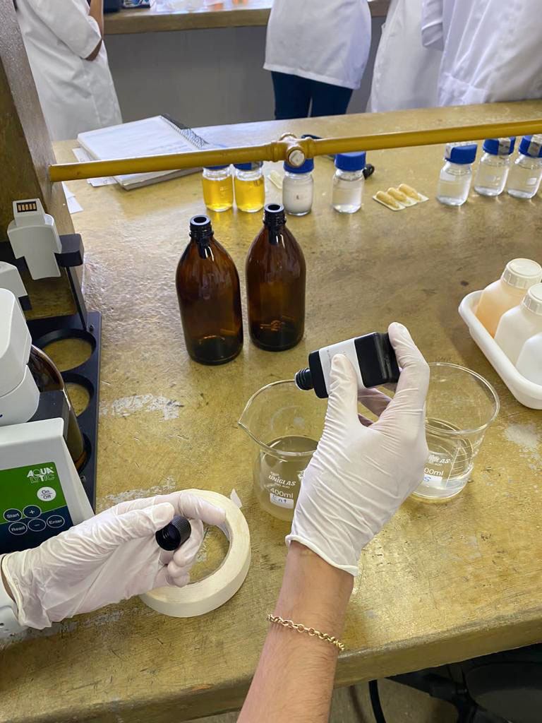 Em aula prática, estudantes do curso técnico analisam coletas de esgoto da ETE do Campus