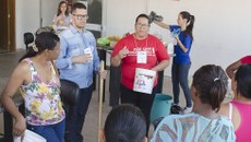 Doze integrantes da Associação de Mulheres do Bairro Conquista participaram da atividade, realizada na tarde do dia 28 de setembro no Campus. Divididas em quatro grupos, foram orientadas sobre o passo a passo para a feitura do sabão caseiro em barra.
