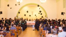 O IFMG - Campus Governador Valadares orgulha-se de concluir a formação de mais 60 alunos dos cursos Técnicos Integrados, sendo 33 em Meio Ambiente (TMA) e 27 em Segurança do Trabalho (TST). A cerimônia de colação de grau dos formandos aconteceu na noite do dia 21 de dezembro, na Capela do Espírito Santo, da Paróquia de Lourdes. Cerca de 280 pessoas, entre familiares, amigos, docentes e técnicos-administrativos do Campus marcaram presença para celebrar essa importante vitória profissional dos estudantes.