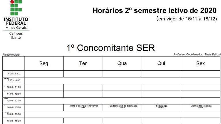 Horário de Monitorias