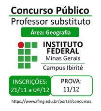 O campus Ibirité do IFMG torna público a abertura do processo seletivo simplificado, Edital Nº 12/2019, para contratação de professor da área de Geografia.
