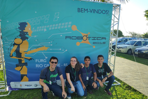 Participação na MNR fase nacional. Da esquerda para a direita: prof. Elias J R Freitas (coordenador da EPIIBOTS), Letícia P. Colombo, Gabriel C. D. da Conceição e Lucas M. Ferreira.
