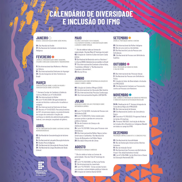 IFMG lança calendário e reafirma compromisso com a Diversidade e a Inclusão