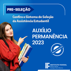 Estudantes dos cursos técnicos e de graduação do Campus Ouro Branco já podem conferir se estão na nova pré-seleção do Auxílio Permanência 2023 que pode ser acessado pelo Sistema de Seleção da Assistência Estudantil (SSAE) e irá conceder auxílios de acordo com o perfil socioeconômico dos estudantes (você também pode conferir o resultado aqui). É necessário acompanhar o processo pelo Sistema de Seleção da Assistência Estudantil para fornecer informações ou documentos que podem ser solicitados.