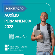 Estão abertas, até o dia 27 de março, as inscrições para a solicitação do Auxílio Permanência 2023, um apoio financeiro que visa auxiliar o estudante na integralização do seu curso. São oferecidas quatro modalidades de bolsa permanência com valores de R$ 150,00 a R$ 400,00 de acordo com o perfil socioeconômico dos estudantes.
