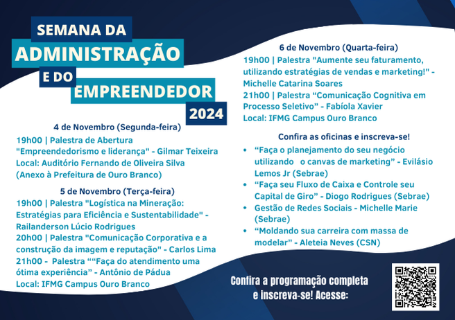 Semana da Administração e do Empreendedor 2024 será realizada em Ouro Branco