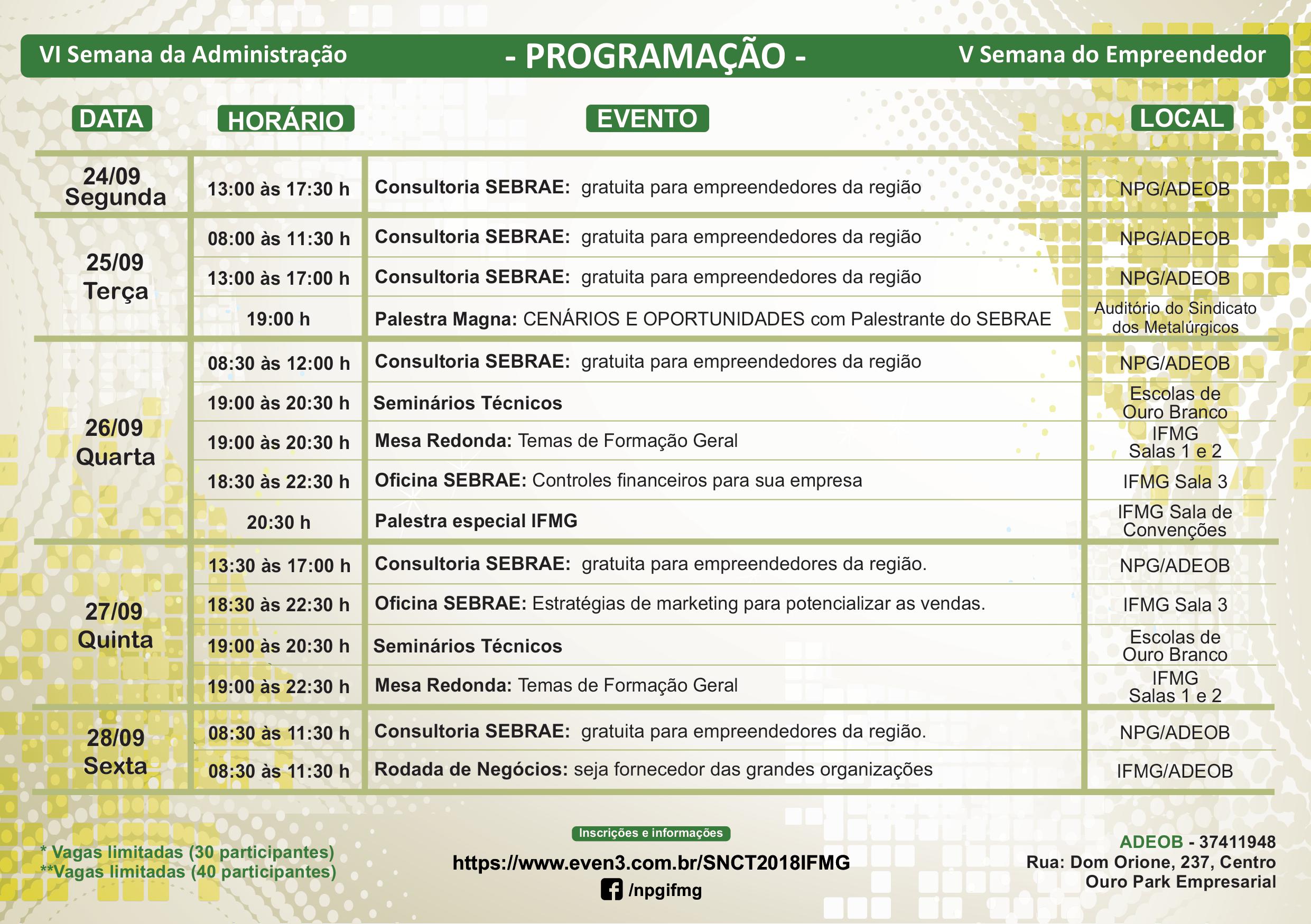VI Semana da Administração & V Semana do Empreendedor 2018