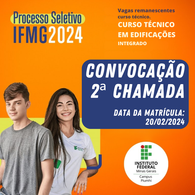 2ª CHAMADA - Vagas remanescentes curso Técnico em Edificações Integrado ao Ensino Médio