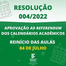 Notícias RESOLUÇÃO Nº 4 DE 01 DE JULHO DE 2022 Tweet RESOLUÇÃO Nº 4 DE 01 DE JULHO DE 2022 Calendário Engenharia Civil e Subsequente Calendário Técnico Integrado