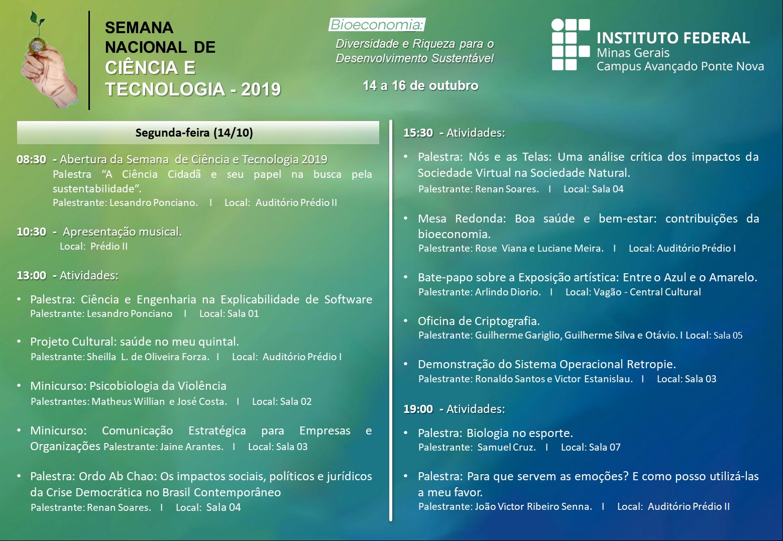 Inscrições abertas: Semana de Ciência e Tecnologia 2019!