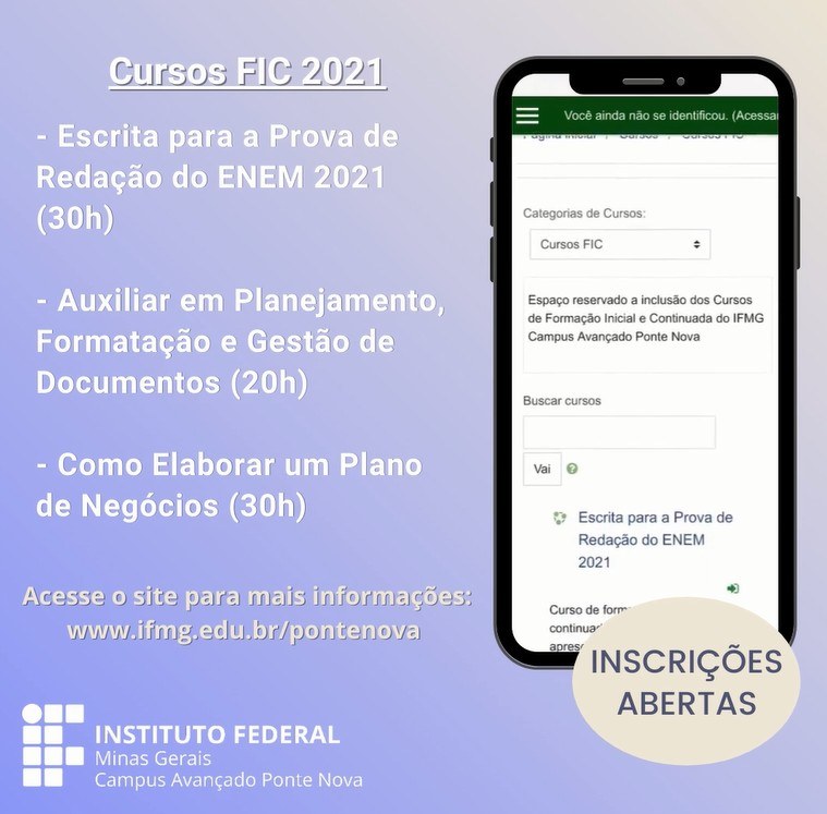 Inscrições abertas para cursos FIC do IFMG Ponte Nova. Confira!