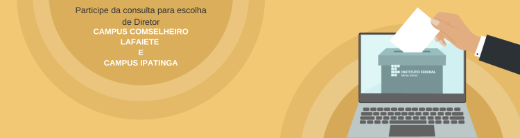 O IFMG realiza, em dezembro, eleições para escolha de diretores, para o mandato no período remanescente de 2023 a 2027. O processo de escolha dos dos diretores dos campi avançados Conselheiro Lafaiete e Ipatinga é regido pelo Edital nº 627/2024. Docentes, técnicos administrativos e estudantes das unidades terão direito a voto.