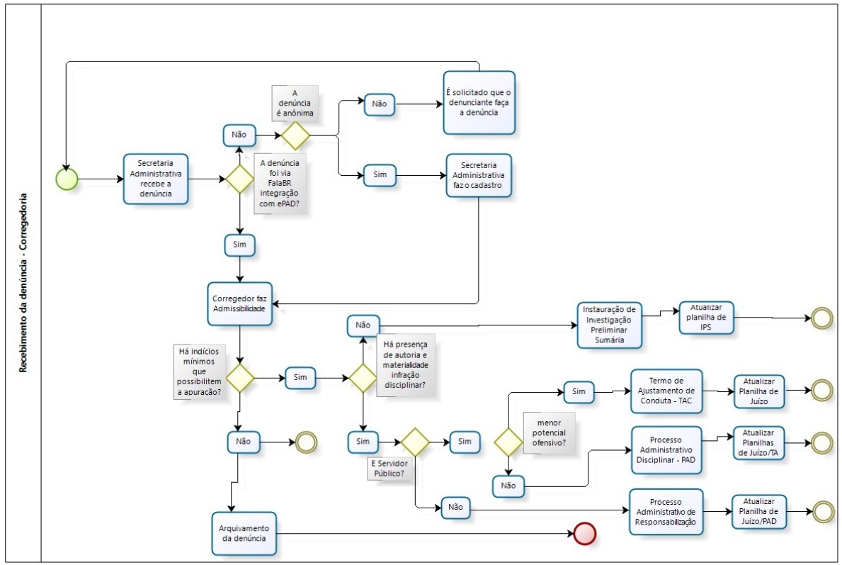 Após o recebimento da denúncia a Corregedoria segue o seguinte procedimento: