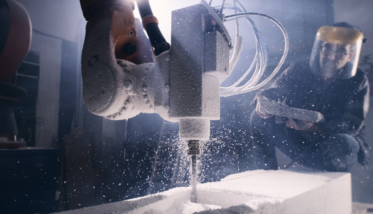 Técnico controla robô em fábrica/indústria