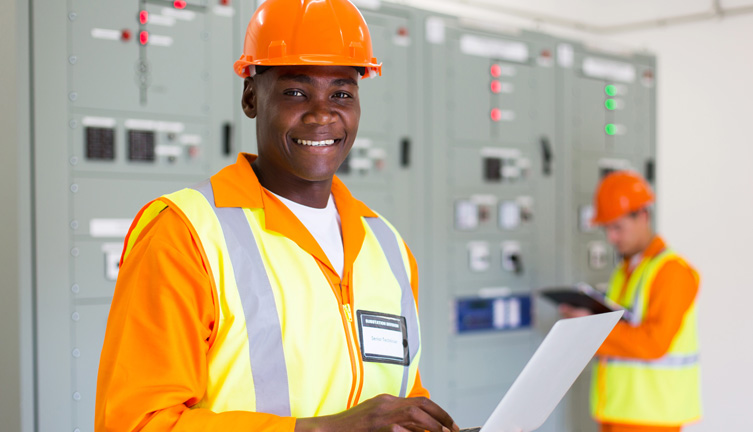 Profissional em indústria utilizando equipamentos de proteção individual.