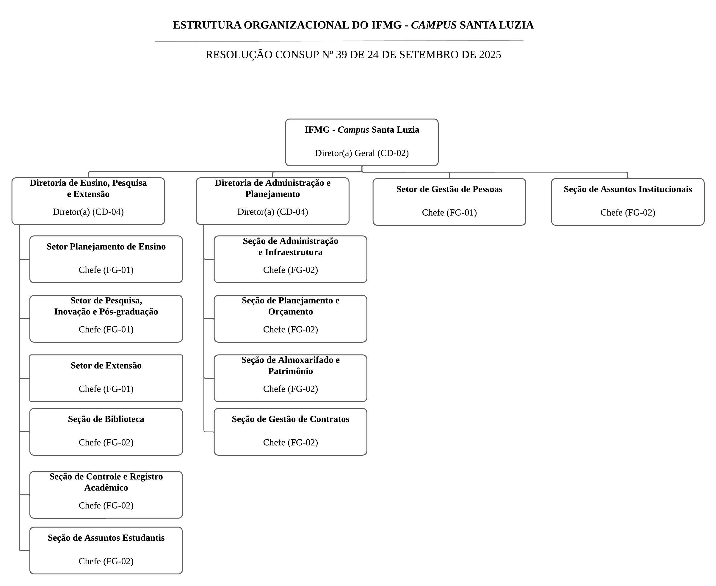 Campus Santa Luzia CSL Resolução nº 39 de 24/09/2025 Visualizar organograma Relatório Estrutura Siorg - Santa Luzia
