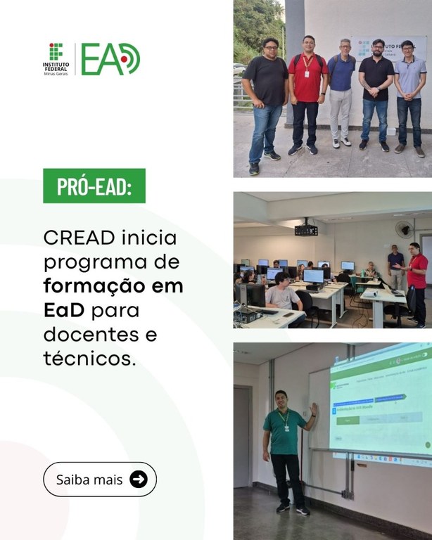 O Centro de Referência em Educação a Distância (CREAD) iniciou em março deste ano a implantação de seu Programa de Formação de Servidores para Educação a Distância (Pró-EaD)
