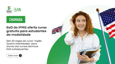 O Instituto Federal de Educação, Ciência e Tecnologia de Minas Gerais (IFMG) está com inscrições abertas para o curso “Inglês Quatro Habilidades”, ofertado gratuitamente e na modalidade a distância. A iniciativa disponibiliza 30 vagas para estudantes dos cursos técnicos subsequentes do IFMG na modalidade EaD.