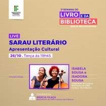Neste ano, a Semana do Livro e da Biblioteca apresenta para a comunidade acadêmica do IFMG e público em geral uma programação que visa estimular o hábito da leitura e o uso das bibliotecas físicas e virtuais. A Semana conta com treinamentos, bate-papo com autores, divulgação de autores do IFMG, indicações de leitura e muito mais.