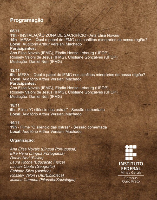 Campus Ouro Preto promove atividades nos dez anos de rompimento da barragem de Fundão