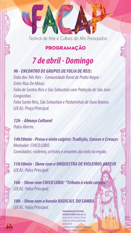 Com mais de 30 atrações gratuitas, evento aprovado em edital da Pró-reitoria de Extensão levará música, teatro, gastronomia, oficinas e atrações artísticas para o distrito de Lobo Leite, em Congonhas