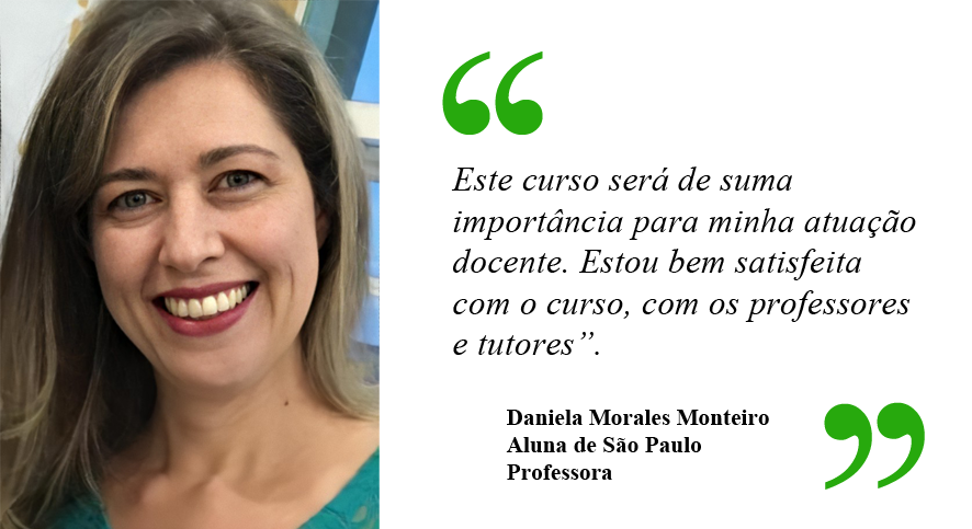 Para outra aluna do Campus Arcos, Daniela Morales Monteiro, moradora de São Paulo e professora há 18 anos nas redes estadual, municipal e particular da capital paulista, o curso propicia oportunidade de formação qualificada e ajuda, de sobremaneira, a atuar no atendimento especializado de alunos.