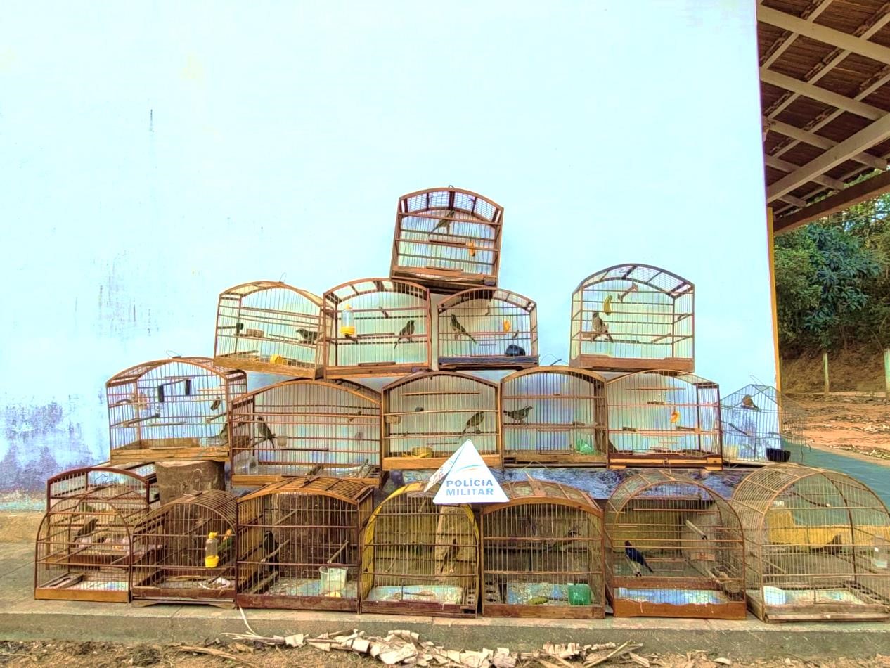 Foto 1. Aves apreendidas pela Polícia Militar do Meio Ambiente e entregues ao Núcleo de Proteção Ambiental do IFMG-SJE para reintrodução ao habitat natural. Foto: Marcelo Filardi