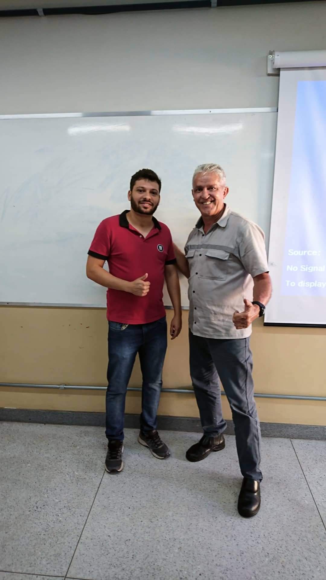 Os professores Willian, do curso de Engenharia Elétrica, e Júlio, treinador de karatê