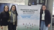Representantes da Ouvidoria do IFMG participaram do I Seminário Nacional de Ouvidorias Públicas de 2025, realizado entre os dias 25 e 27 de junho, em Belo Horizonte. São elas: Marina Contarine, ouvidora do IFMG; Juliana Rodrigues, assistente da Ouvidoria; e Ludmila Murta, ouvidora local do Campus Sabará.