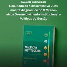 A Comissão Própria de Avaliação (CPA) publicou, na última quinta-feira, 8 de maio, o relatório com os resultados da primeira fase da Avaliação Institucional do IFMG. O documento apresenta o compilado das respostas dadas na pesquisa aplicada durante os meses de novembro e dezembro de 2024. Nesse período, estudantes, professores, técnicos administrativos e comunidade externa puderam participar do primeiro ciclo avaliativo do triênio 2024-2026, respondendo questões relacionadas aos eixos de Desenvolvimento Institucional e Políticas de Gestão.