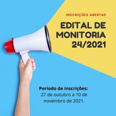 Foi divulgado o Edital 24/2021 para preenchimento de vagas de Monitoria para o segundo semestre letivo de 2021.